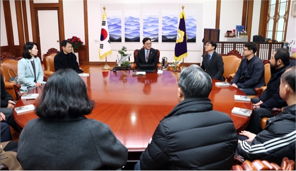 우 의장은 "12.3 비상계엄이라는 큰 위기를 국민과 함께 이겨내며 많은 것이 제자리를 찾아가고 있지만, 평화와 통일의 길은 여전히 험난하다"며 "그러나 강이 아무리 얼어붙어 있어도 얼음장 밑으로는 물이 흐르는 법이고, 평화를 향한 의지는 우리의 것"이라고 언급했다.